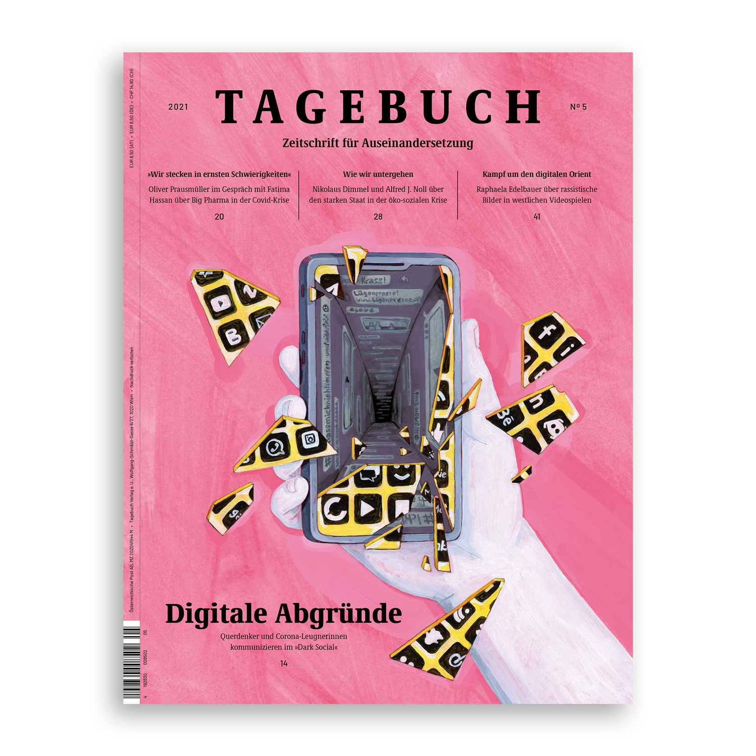Cover- und Editorialillustration für die zehn Ausgaben der Zeitschrift im Jahr 2021. Das TAGEBUCH sucht die Auseinandersetzung mit den Verhältnissen: im Meinungsstreit, in der Offenlegung gesellschaftlicher Verhältnisse und in der Beschäftigung mit Kunst und Kultur.